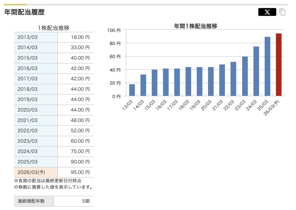 ・継続的に増配している会社は、利益が安定している可能性が高いです。