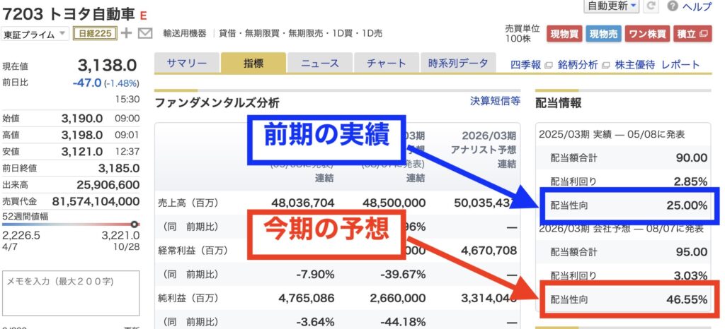 これは「会社が稼いだ利益のうち、どれくらいを株主に還元しているか」を示す指標です。