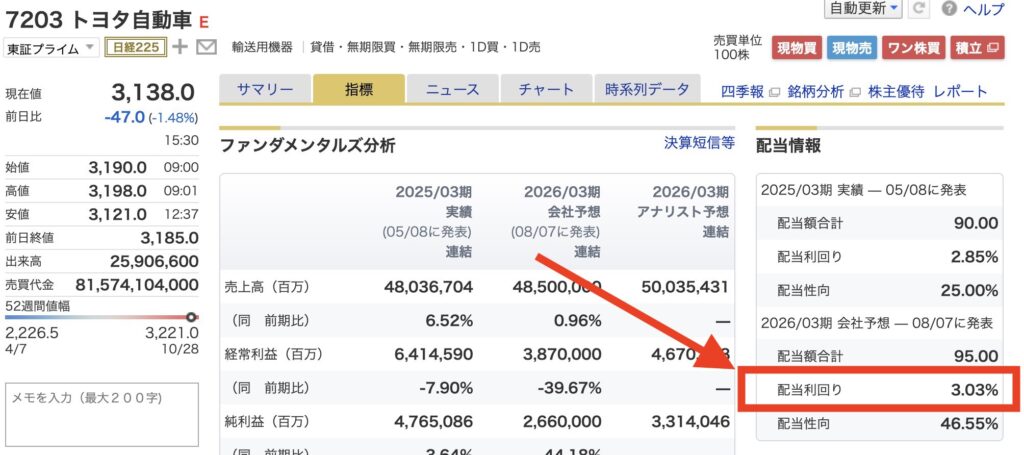 配当利回りは、各証券会社やカブタンの企業情報ページから、簡単に確認することができます。