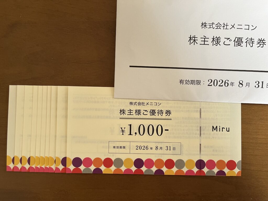 1. メニコン優待券 10,000円分(自社店舗等で利用可)