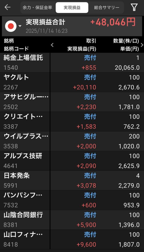 11月14日(金)の株式市場は、全体的に重たい雰囲気でしたね。日経平均は半導体関連株の下落をきっかけにマイナス圏へ。最近まで勢いのあった銘柄が揃って売られ、個人的には「そろそろ調整が来るかも」と感じています。