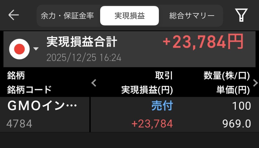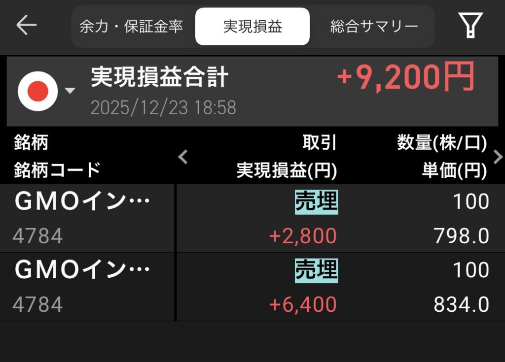 ⏫火曜日に売却せず100株だけ残しておいた分です。チャートを見て「売り時」かと思ったのですが、その後も株価を上げています。