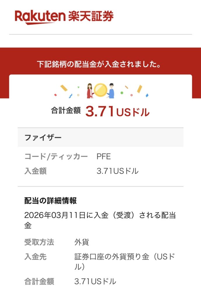 ファイザーからの配当金