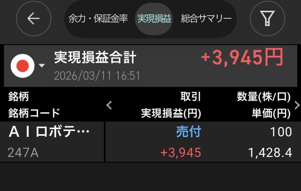 3月11日(水)の利益