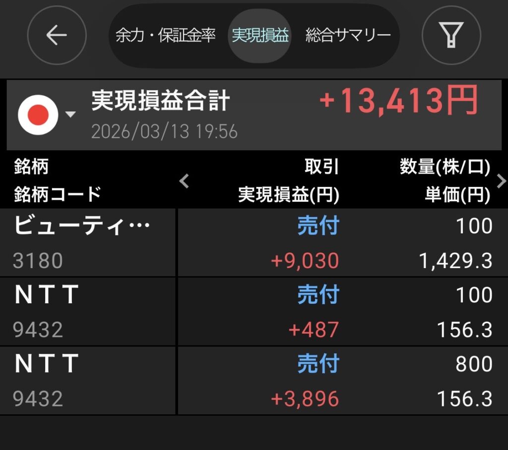 3月13日(金)の利益