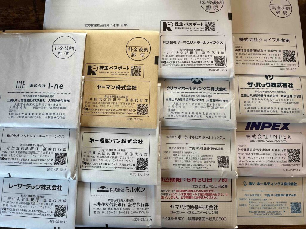 ⏫今週届いた郵便物です。株主総会招集通知、配当金通知、株主優待などが届きました❗️
