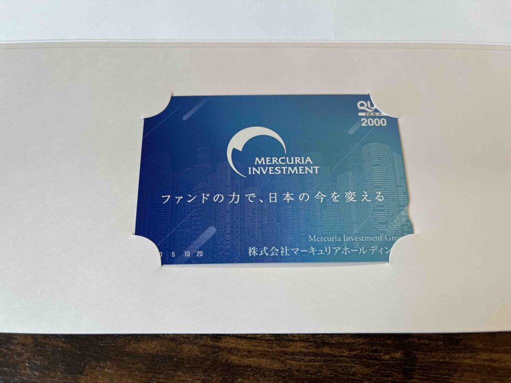 ⏫マーキュリアホールディングス(7347)からはQUOカードをいただきました。