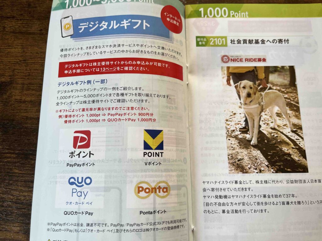⏫最後はヤマハ発動機(7272)の株主優待です。こちらの優待は、複数の商品などから選べる内容となっています。私はデジタルギフトを選択しました。