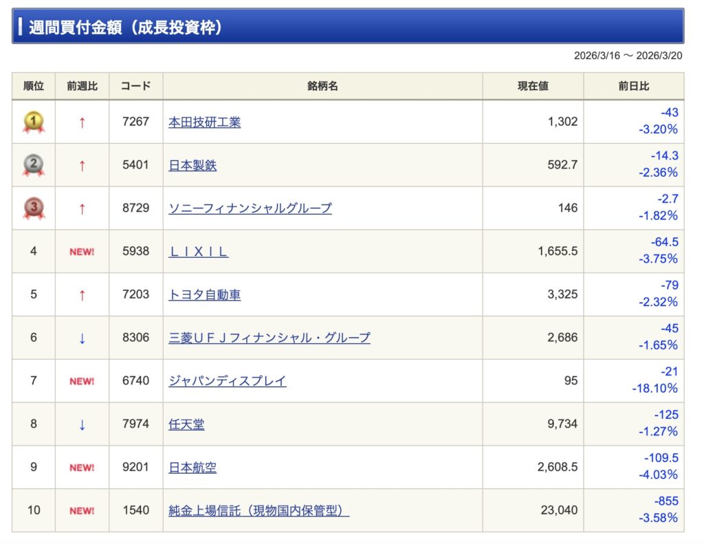10位の純金上場信託は、金価格の下落を背景に買いが入ったとみられます。