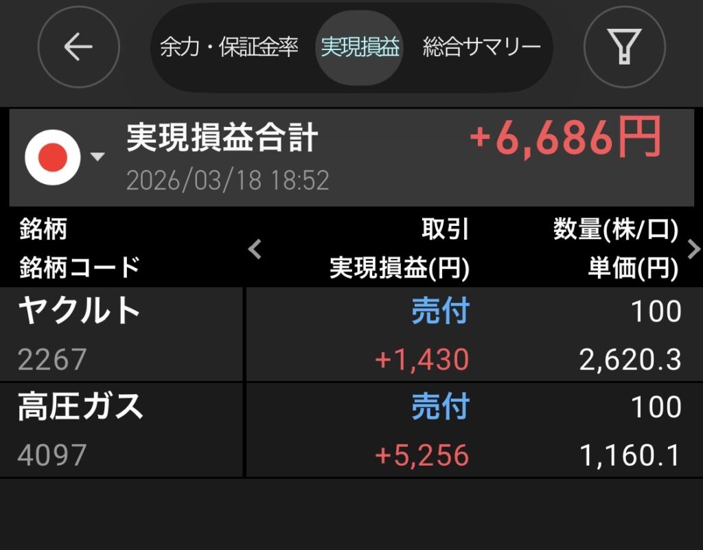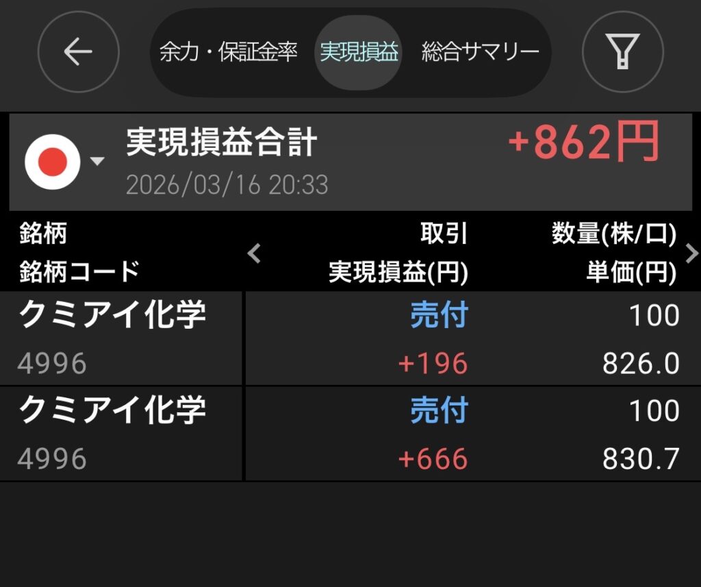 ⏫しばらく塩漬けとなっていたクミアイ化学ですが、先週末に発表された決算を受けて株価が急騰したため、一部を売却しました。