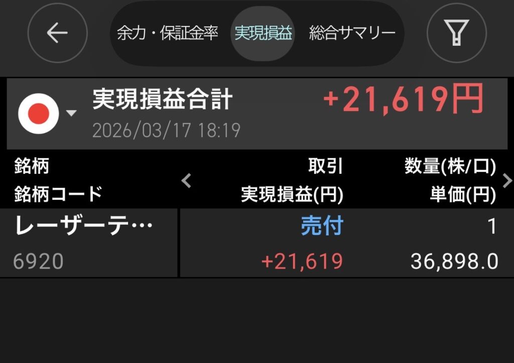⏫NISAで一株だけ保有していたレーザーテックを売却しました。