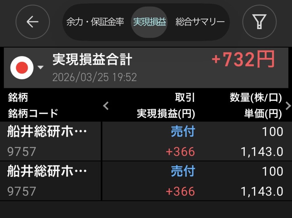 ⏫この日はソシオネクストが急騰したため、利確しました。