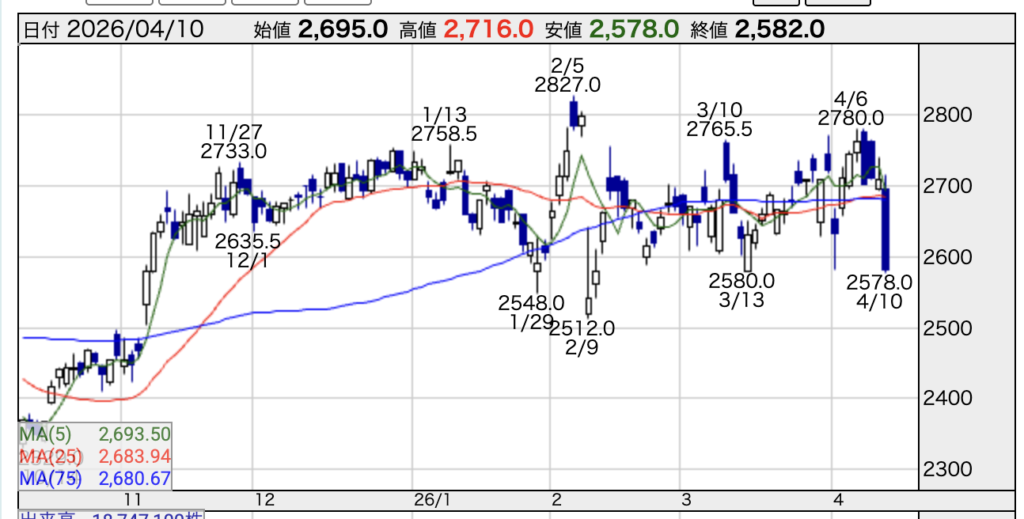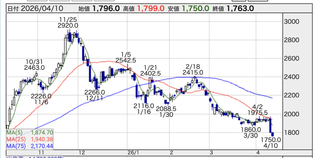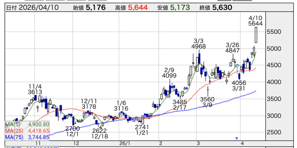 また、フジクラはランキング上位の中では珍しく株価が上昇している銘柄です。データセンターや半導体関連としての期待が続いており、相場の中でも強さが目立つ存在となっています。