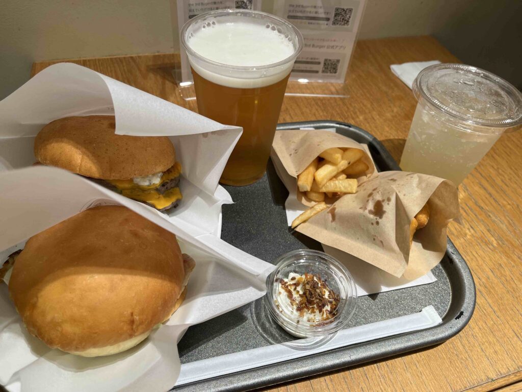 ハンバーガーとナゲット、ポテトにビールと、しっかり楽しんできました。