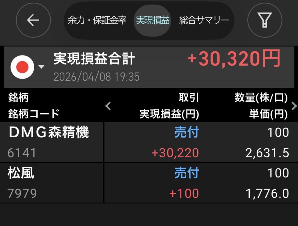 松風は3月に優待取りをした銘柄で、その後プラスに転じたため売却しました。