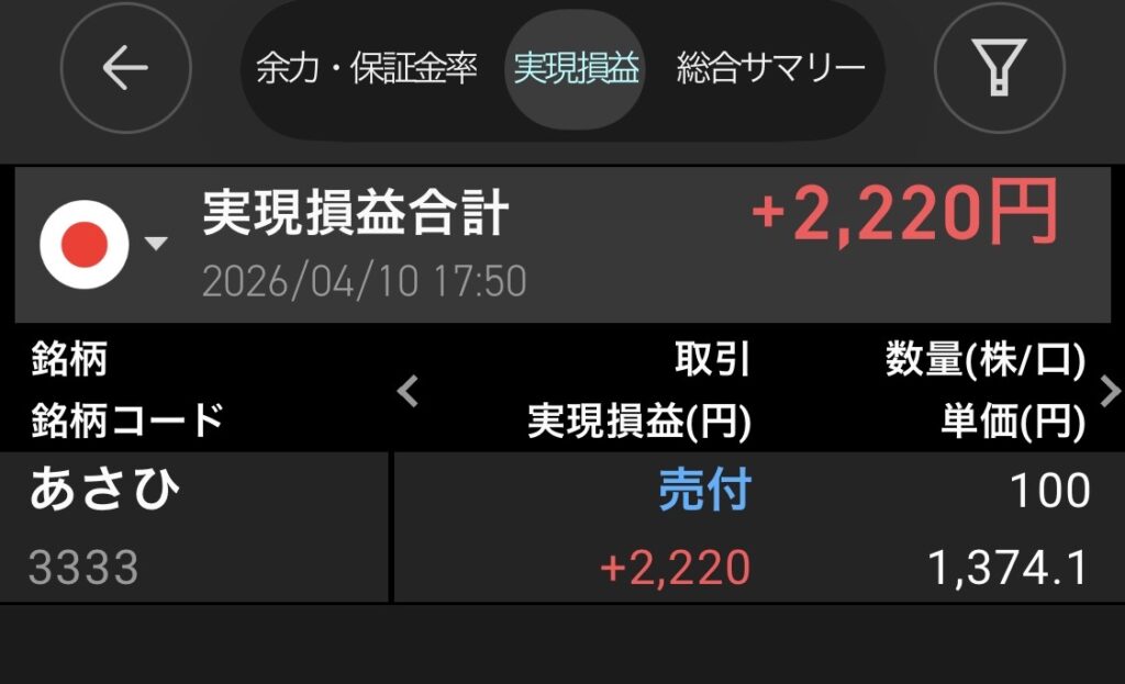 あさひは個人的に好きな銘柄なのですが、株価の値動きがなかなか伸びず、今回は一旦お別れすることにしました。またタイミングを見て入りたいと思っています。